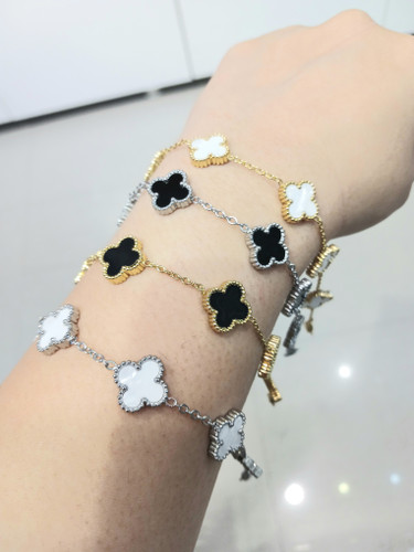 زنجیر طلایی ونکلیف استیل پنچ گل مشکی ، سفید ، سورمه ای و چندگل