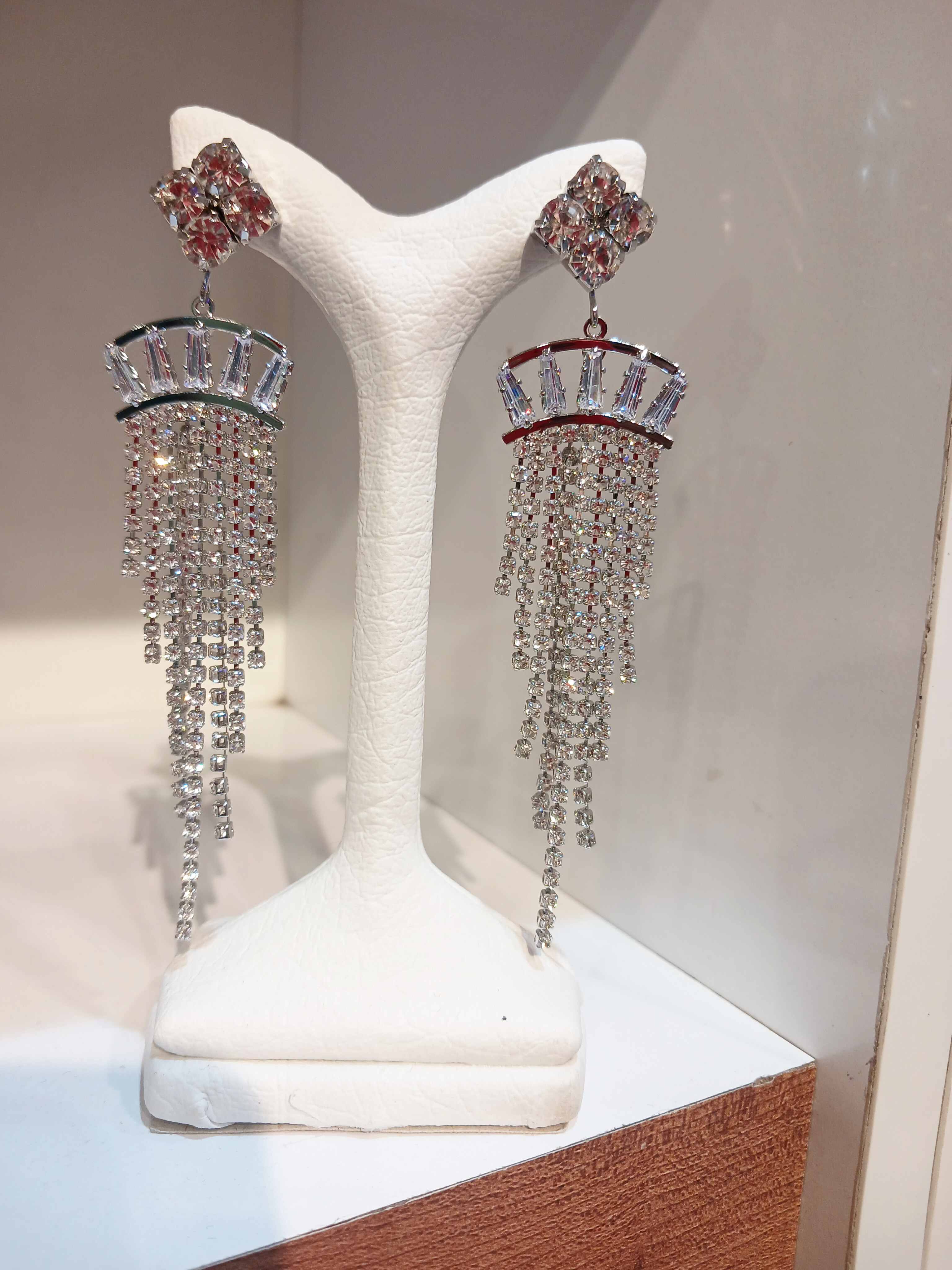 گوشواره جواهری دارای نگین جواهری آویز دار مجلسی طرح جواهر