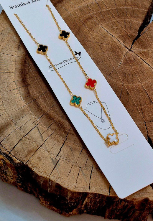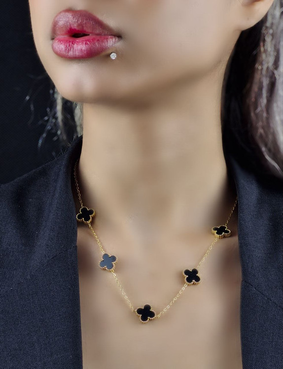 گردنبند ونکلیف زنجیرطلایی استیل زنجیر ونکلیف پنج گل