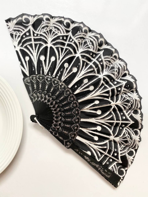 بادبزن تمام مشکی با طرح های چاپ شده سفید