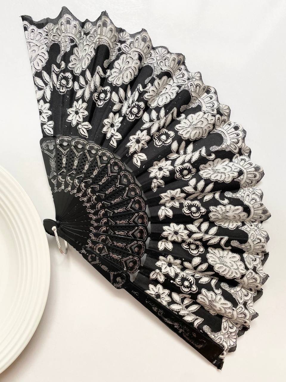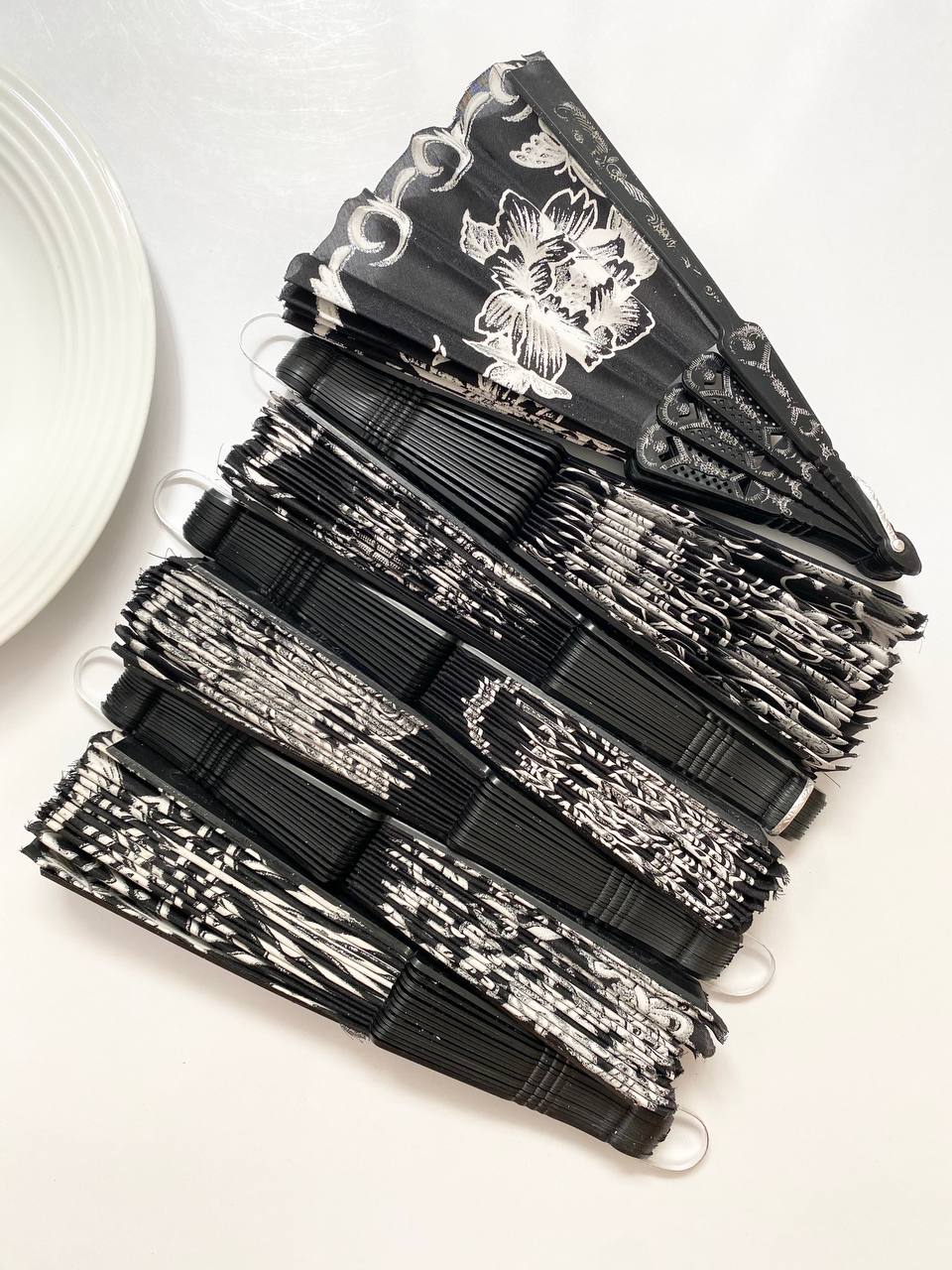 بادبزن تمام مشکی با طرح های چاپ شده سفید