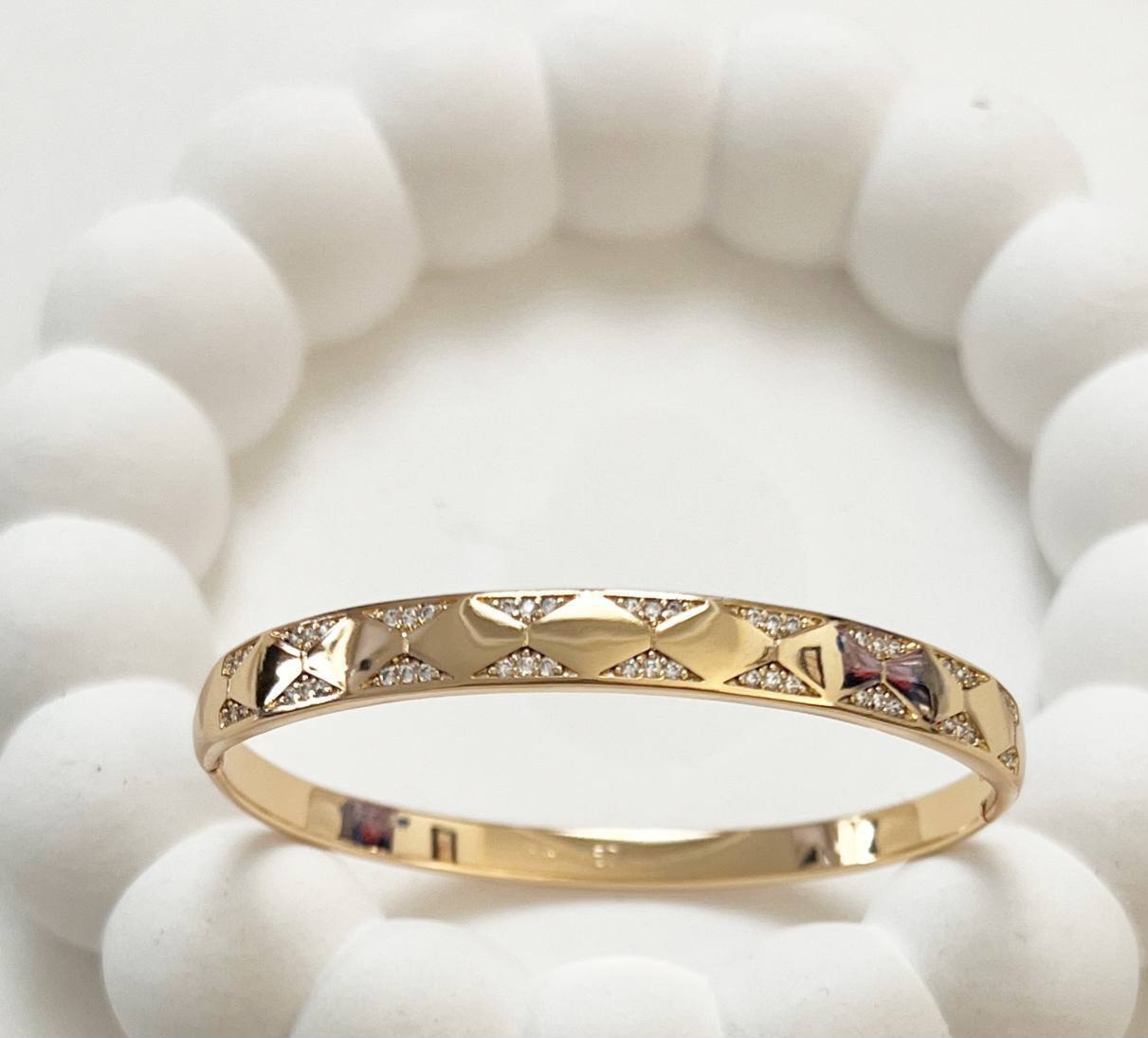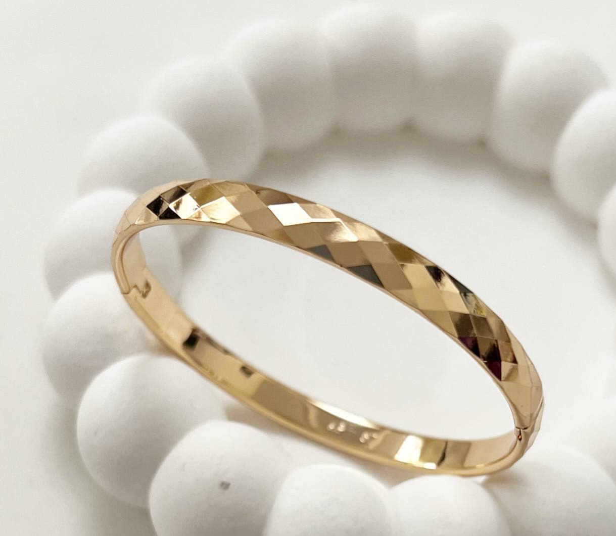 بنگل یا دستبند النگویی برند ژوپینگ ✔️ رنگ ثابت ✔️ ضدحساسیت ✔️ آبکاری طرح طلا بسیار شیک و با جلوه فراوان