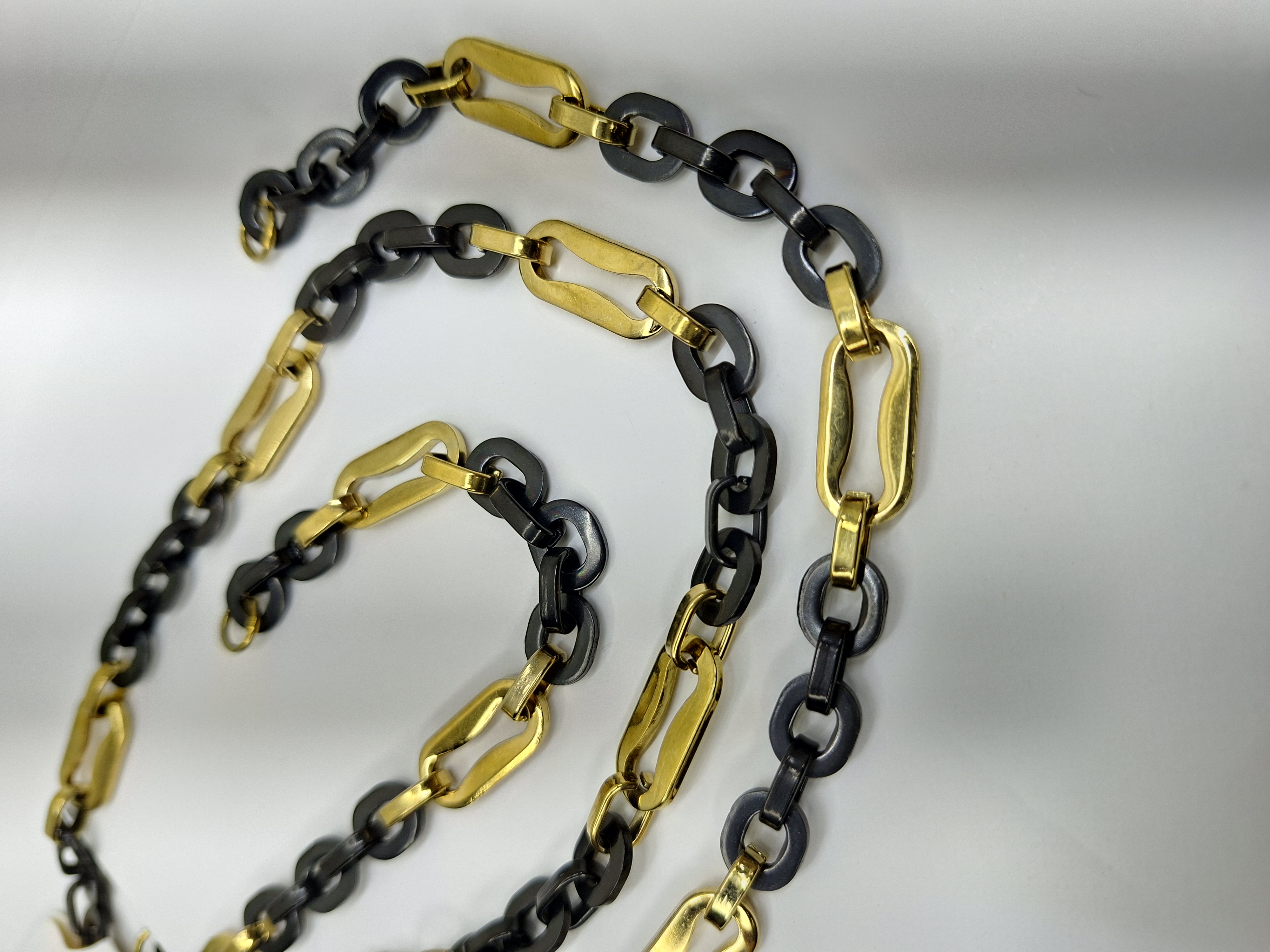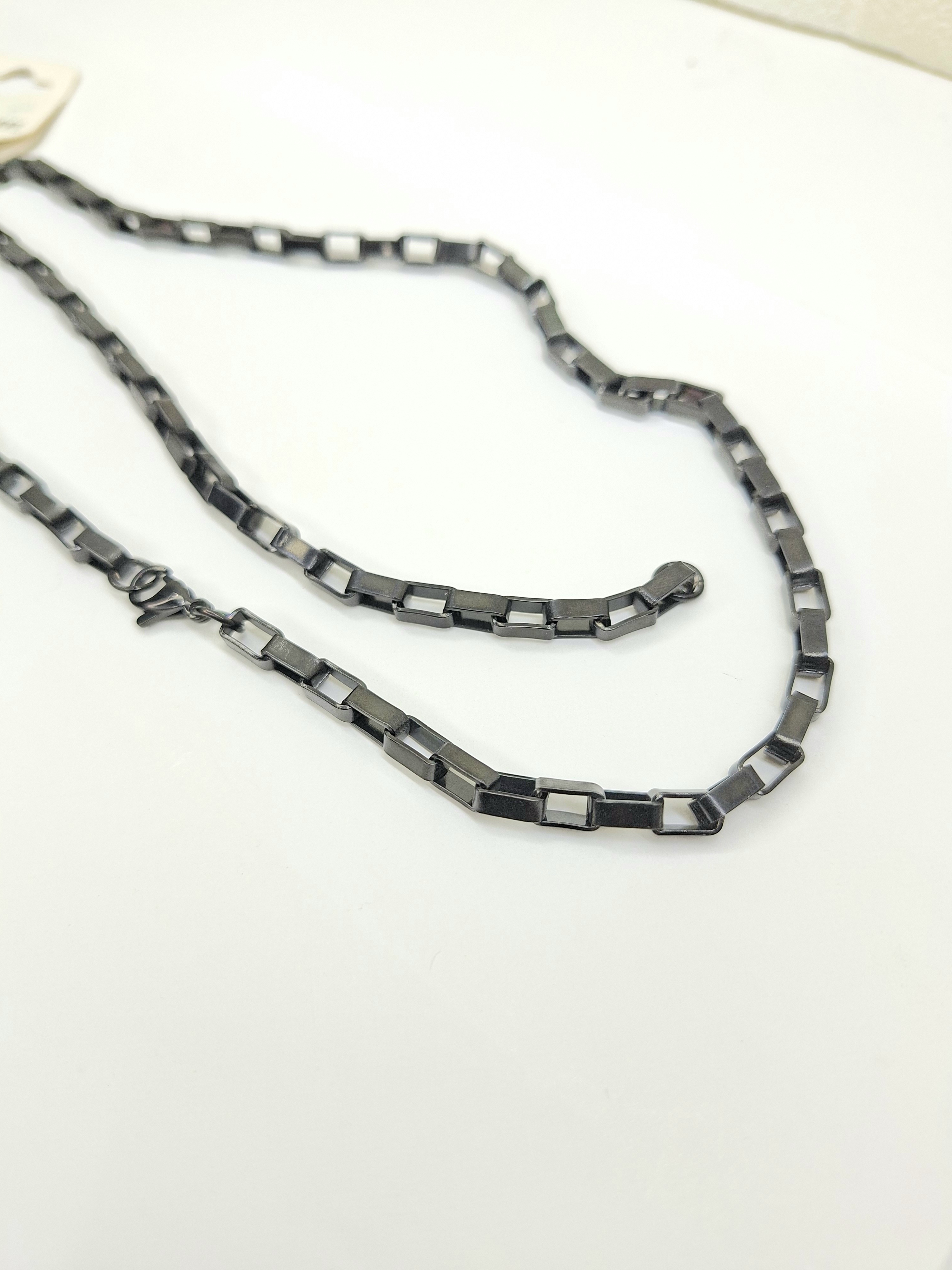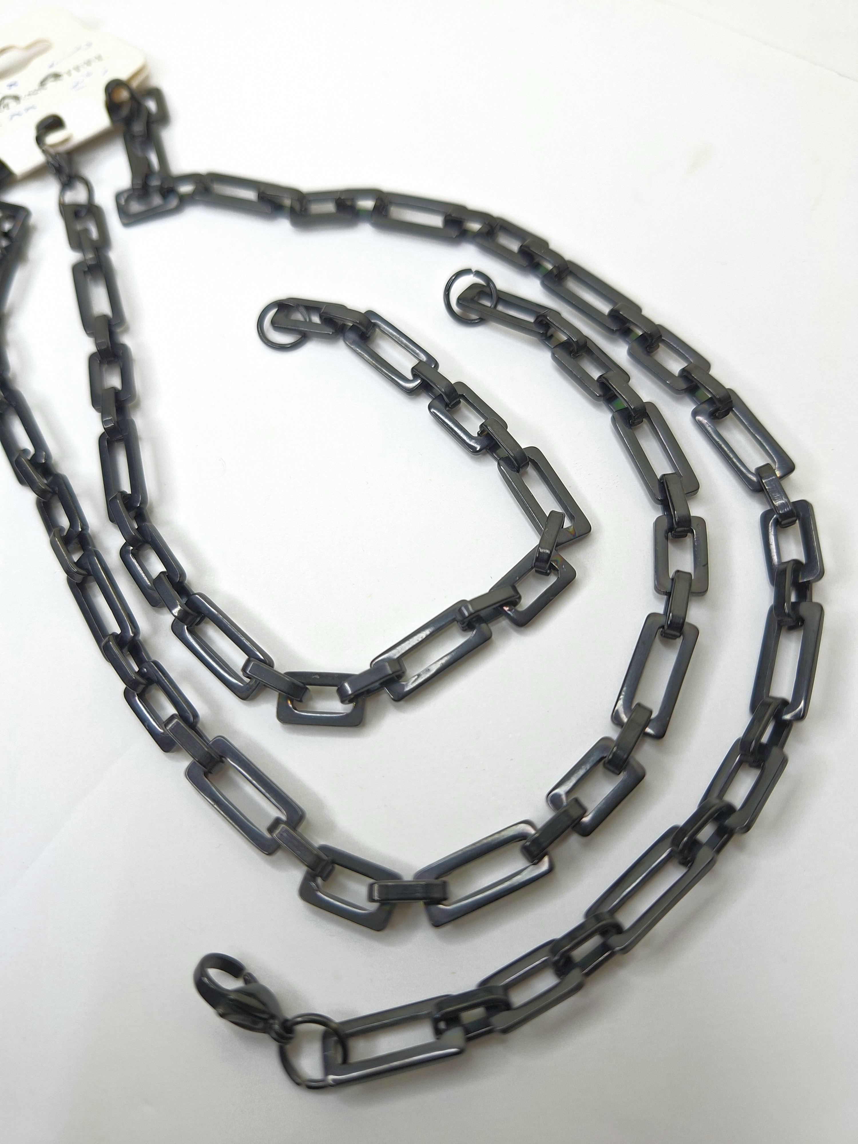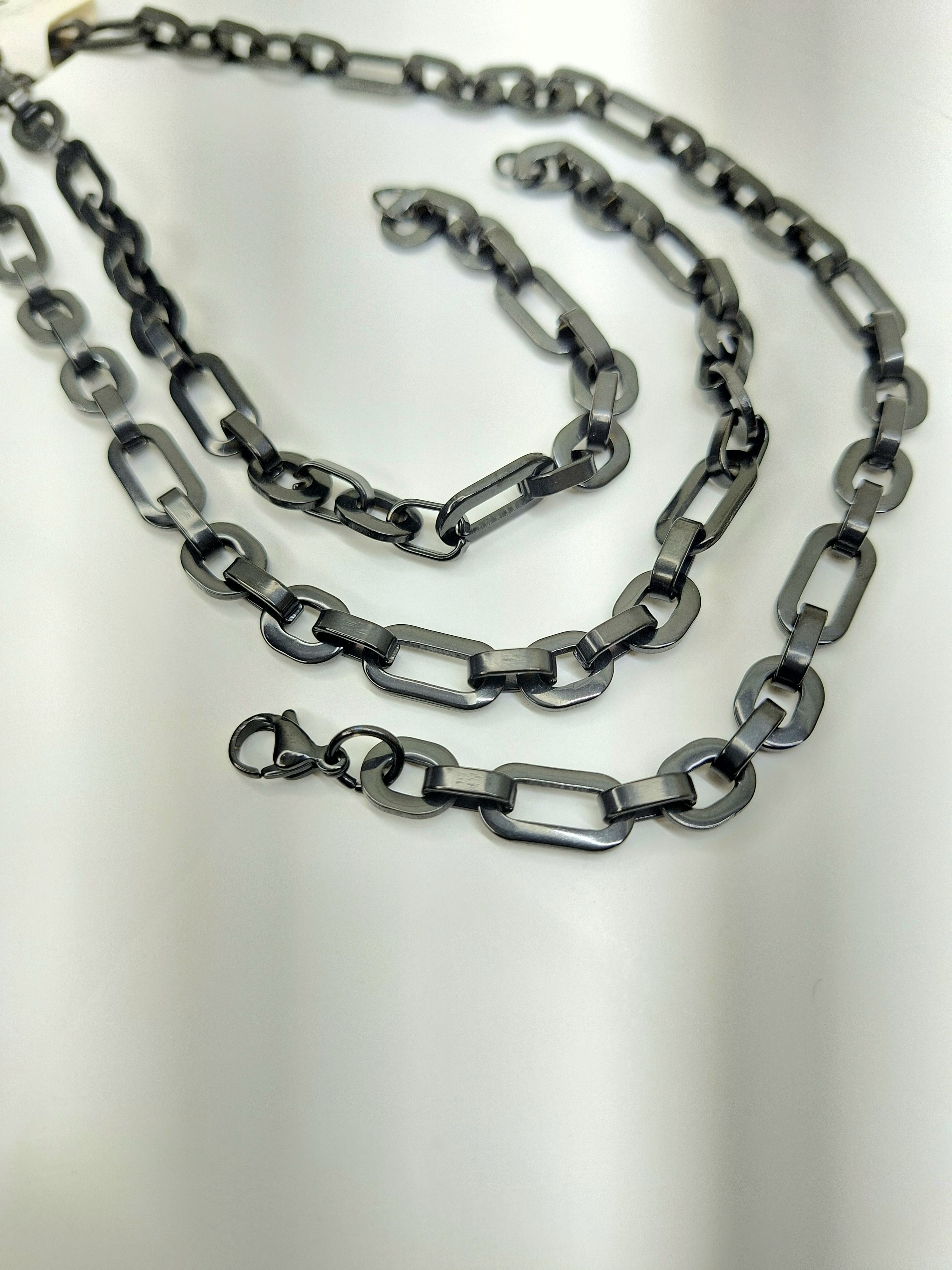 ست گردنبند و زنجیر و دستبند مردانه تمام استیل رنگ مشکی