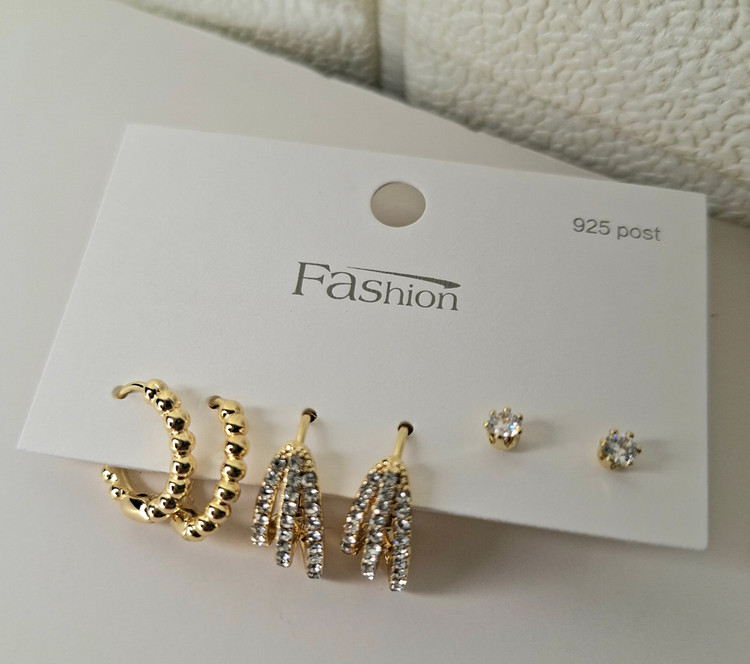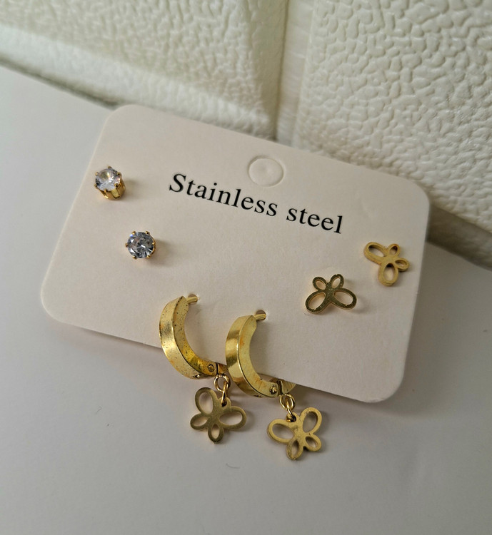 گوشواره های استیل و آبکاری نقره سه جفتی