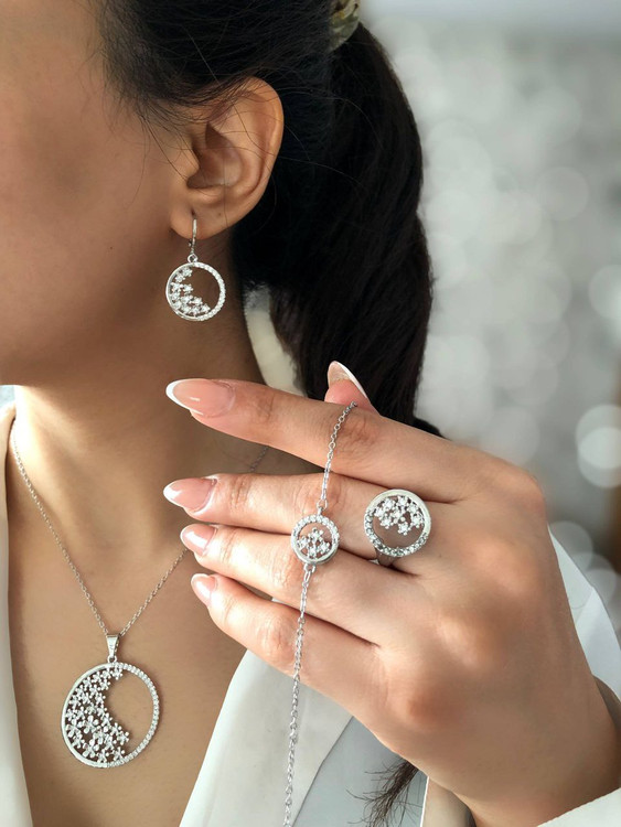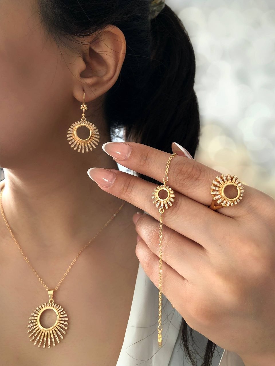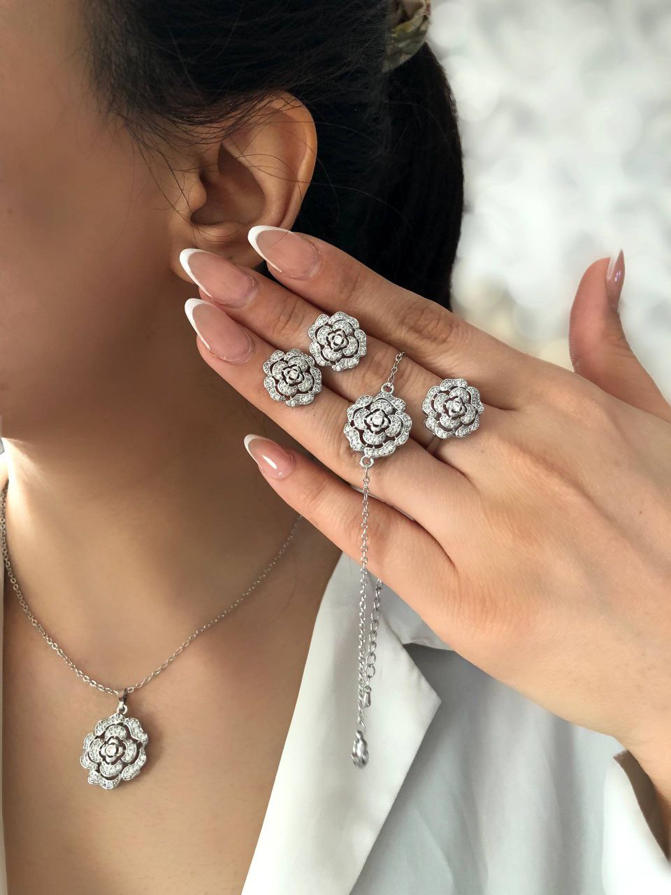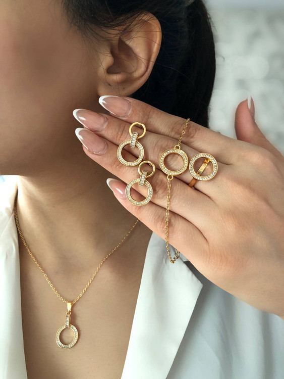 سرویس شامل انگشتر ، گوشواره ، پلاک و زنجیر و دستبند