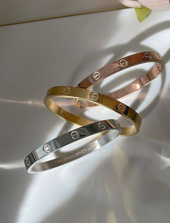 بنگل یا دستبند النگویی استیل طرح کارتیه سه رنگ مردانه و زنانه