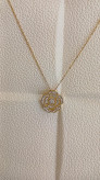 زنجیر و پلاک طرح گل ، پلاک برجسته میباشد و تمام نگین کریستالی کار شده